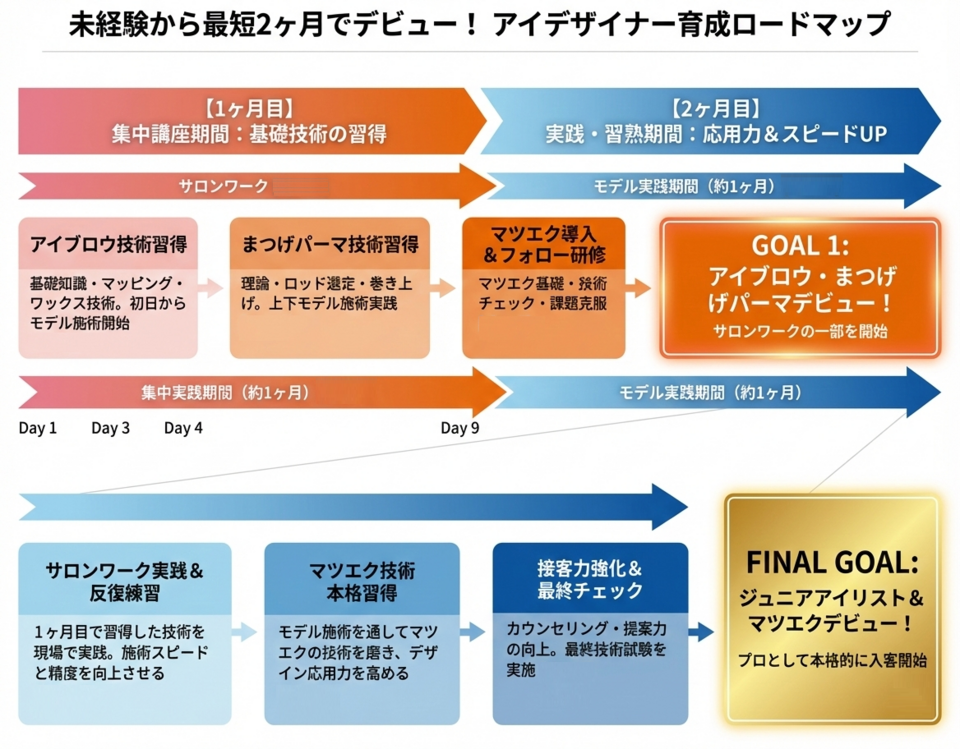一生懸命覚えた技術を、デビューするまでの間に活かせないのはもったいないですよね?AOではできるようになったメニューのお客様から入っていく事で、早いうちから、覚えた技術や知識を活かし自分のものにすることができます!