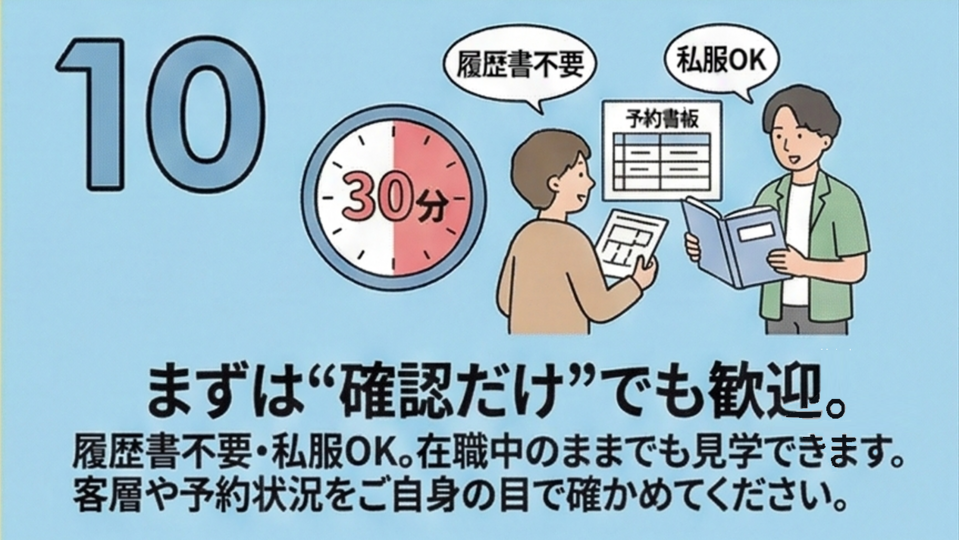 ※まずは見学で「客層・入客の流れ」を確認してからでOKです。
